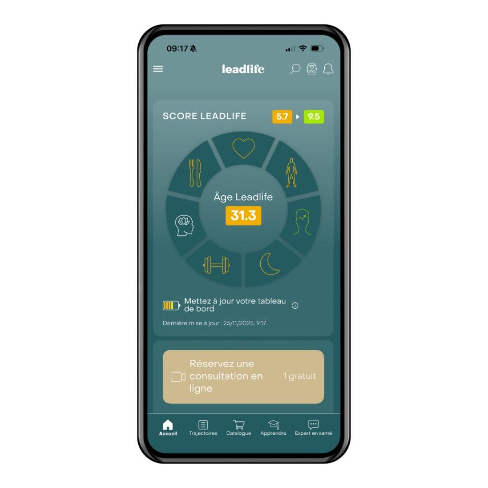 - Un mode de vie optimal, c'est essentiel. Mais comment savoir ce qui vous convient le mieux? Car ce n'est que lorsque vous vous sentez bien dans votre peau que tout va bien, pour vous comme pour votre entourage. Pour vous soutenir dans cette démarche, nous avons conclu un partenariat avec Leadlife et nous vous offrons une adhésion Leadlife Plus gratuite. Vous avez ainsi accès à l'app de santé & bien-être pendant un an.