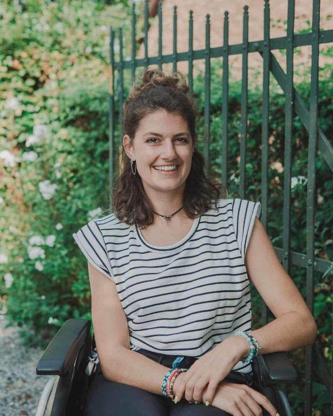 Laurent: "Margaux a d’abord étudié l’orthoptie, la "kiné des yeux" mais en troisième année, la maladie (l’ataxie de Friedreich) l’a obligée à arrêter. Elle a alors suivi une formation en bureautique destinée aux personnes en situation de handicap.